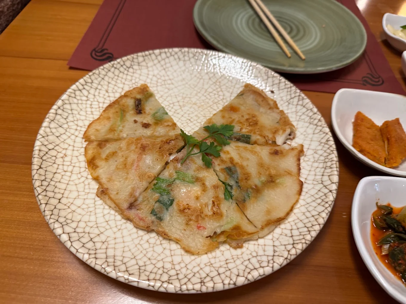 Nombre coreano: 해물 전. Tortilla típica coreana con marisco